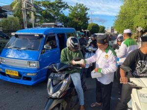 Ternate — Dewan Pimpinan Daerah Lembaga Dakwah Islam Indonesia (LDII) Kota Ternate menggelar kegiatan berbagi takjil kepada masyarakat dalam rangka menyemarakkan bulan suci Ramadan 1447 Hijriah. Kegiatan tersebut dilakukan dengan membagikan paket takjil kepada para pengendara dan masyarakat yang melintas di kawasan lampu merah depan Kantor Pajak Stadion, Kota Ternate, menjelang waktu berbuka puasa, Sabtu (8/3/2026).